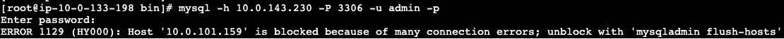 • Db커맨드 : mysqladmin flush-hosts -h 10.0.143.230 -P 3306 -uadmin -p