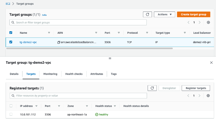 데모환경에서는 Target Group의 Target은 RDS Instnace IP 입니다.