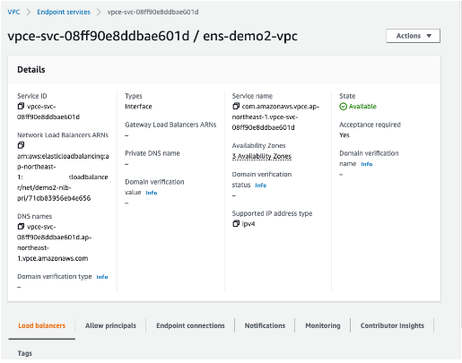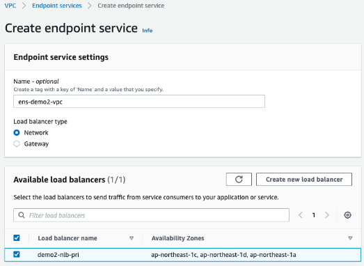 데모 환경에서 demo2-vpc의 RDS에 접근하기 위해 Endpoint Service를 사용하여야 하며, Endpoint Service에서 RDS와의 연결을 위해 Network Load Balancer를 생성하여야 합니다.