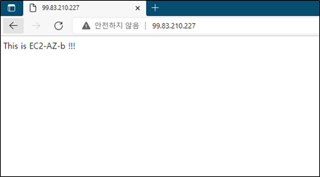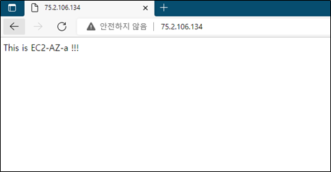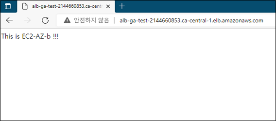 Application LoadBalancer까지 생성되었다면, Global Accelerator를 생성합니다. Application LoadBalancer를 Internet-facing으로 생성한 경우 Application LoadBalancer의 DNS Name으로 서비스가 정상인지 사전에 확인이 가능합니다. (이번 TEST에서는 실제 서비스 트래픽이 도착한 최종 EC2 의 AZ를 웹페이지로 띄워주는 단순한 HTTP 80 웹서비스를 구성하였습니다.)