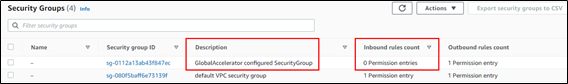 이 밖에도 생성된 Elastic Network Interface에 신규 Security Group이 할당되어 있으나, 별도 Inbound rule은 없고 이 상태에서도 Global Accelerator 서비스 제공에는 이상이 없습니다.