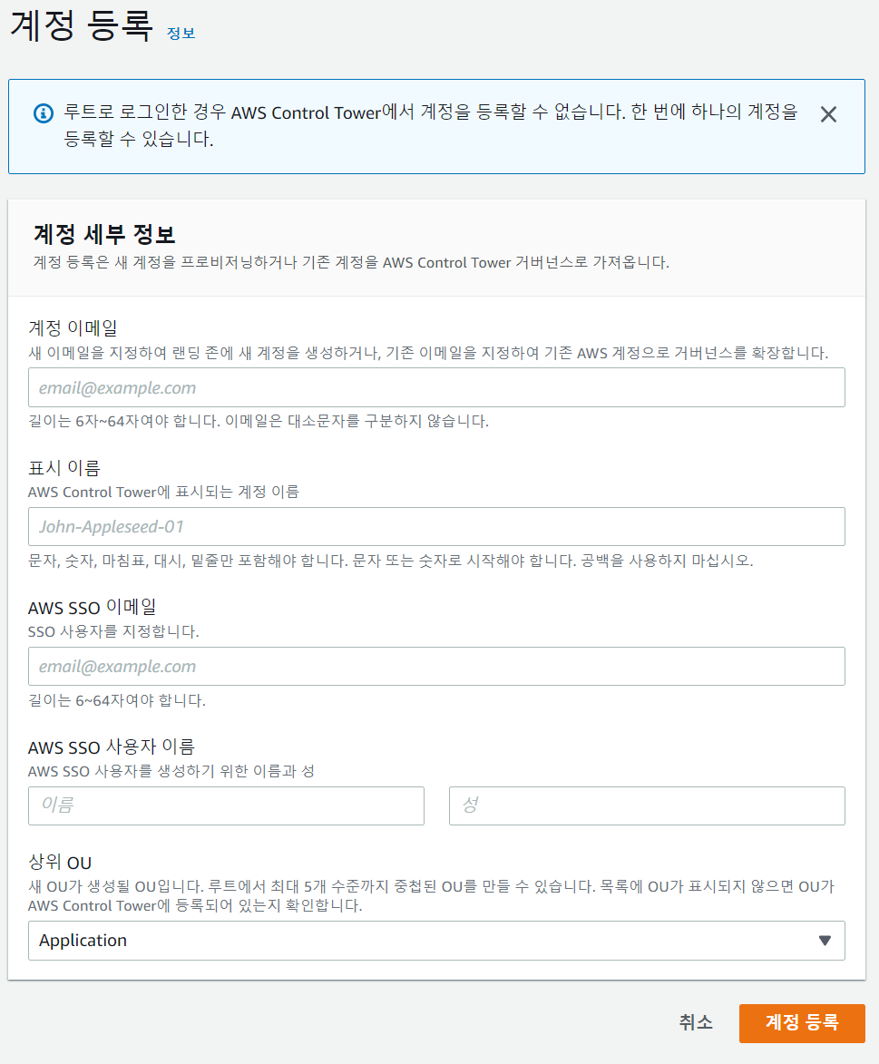 ● AWS SSO 이메일 : SSO에서 사용할 이메일