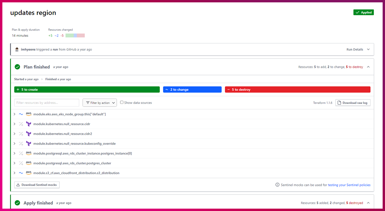 인프라 파이프라인을 구축하면 인프라 리소스를 코드로 관리(Infra as a Code) 하고 자동화할 수 있는데요. 이는 인프라 구성이 일관되고 안정적이며, 사람의 개입이 줄어들어 시간과 비용을 절약할 수 있습니다. 또한, 인프라 구성 변경 사항들을 관리할 수 있어 안정성을 유지할 수 있습니다.