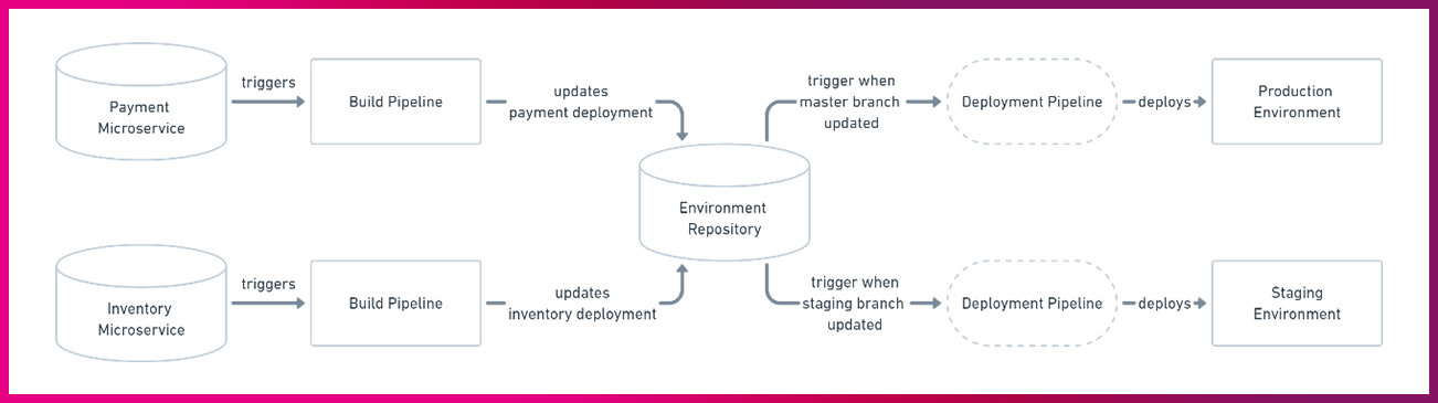 GitOps 전략은 특히 Kubernetes(컨테이너 오케스트레이션 플랫폼)와 같은 Container Orchestration(컨테이너 배포, 관리, 확장을 자동화해 컴퓨팅 자원을 관리하고 조정) 툴과 함께 사용할 때 가장 효과적입니다. Kubernetes 클러스트의 구성과 애플리케이션 배포를 관리할 수 있고 일관성 있고 안정적인 배포를 보장할 수 있으며, 인프라와 애플리케이션 배포를 통합해 관리할 수 있습니다. 즉, 애플리케이션 자동화에서 GitOps 전략을 활용하면 더 효율적이고 안정적인 배포를 경험할 수 있습니다.