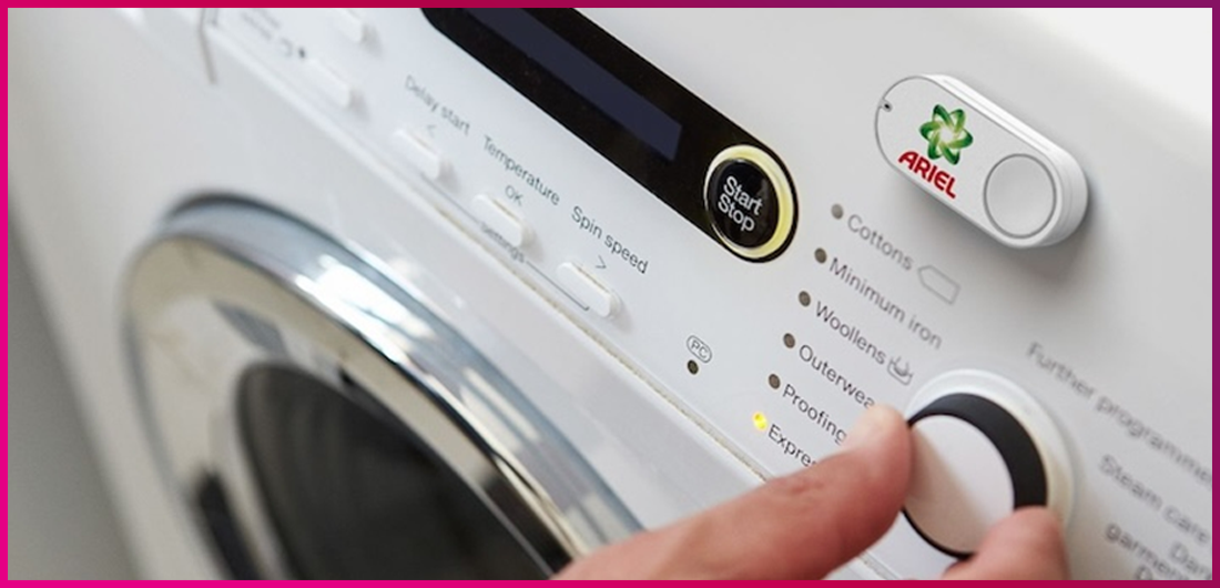 대시 버튼은 세제, 기저귀, 면도기 등 300개 제품에 대해 소비자가 사전에 설정한 결제 방법과 배달 지시 사항을 클릭 한 번에 완료하는 원클릭 쇼핑 서비스입니다. 소비자가 버튼을 누르면, 실제 주문부터 배송까지의 상호작용은 자동화 봇이 진행하는 방식입니다.