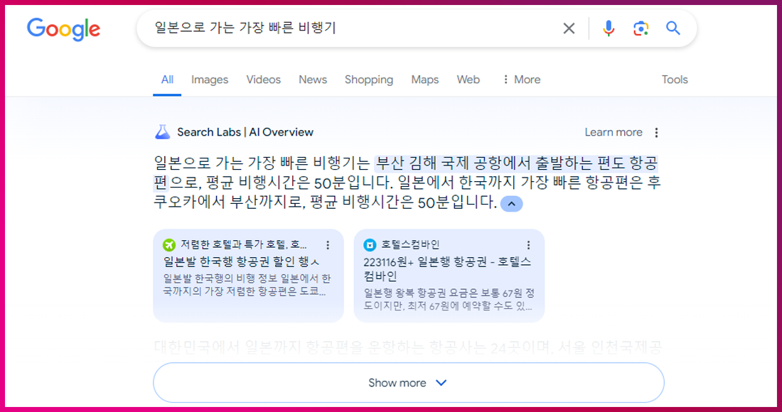 AI 검색 엔진은 검색 결과 페이지 구성을 변화시킬 것으로 보입니다. 대표적인 예로 앞서 소개한 구글 AI 오버뷰가 검색 결과 상단에 핵심 정보를 요약해주는 것을 생각해볼 수 있습니다. 앞으로는 AI의 이해력을 활용해 사용자의 검색 의도에 더욱 부합하는 맞춤형 광고가 부상할 것으로 보입니다. 또한 AI의 고도화된 데이터 분석 능력을 활용해 더욱 정교한 타깃 마케팅이 가능해질 것으로 예상됩니다.
