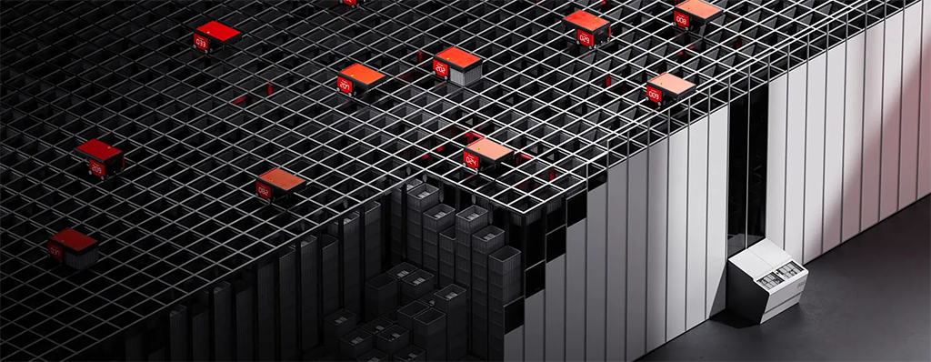 고밀도 보관 솔루션은 로보틱스 기반의 큐브 스토리지 솔루션과 멀티 셔틀(Multi Shuttle)이 있으며, 보관 효율 및 물동량 처리 능력을 극대화해 줍니다. 대표적인 사례로 오토스토어(AutoStore) 시스템이 있습니다. 오토스토어 시스템은 로봇 기반 큐브형 자동 창고 시스템으로, 로봇들이 레일을 따라 이동하면서 격자 구조 창고에 보관된 제품들을 저장하고 회수하는 역할을 수행합니다. 이를 통해 화물이 이동하는 경로를 없애고 상품이 보관된 랙(Rack) 상부 또는 하부에서 로봇을 이용해 상품을 신속하게 입고하며, 피킹까지 자동화할 수 있습니다.