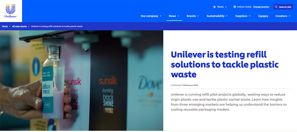 유니레버 홈페이지, 지속가능성 정보 공유 모습