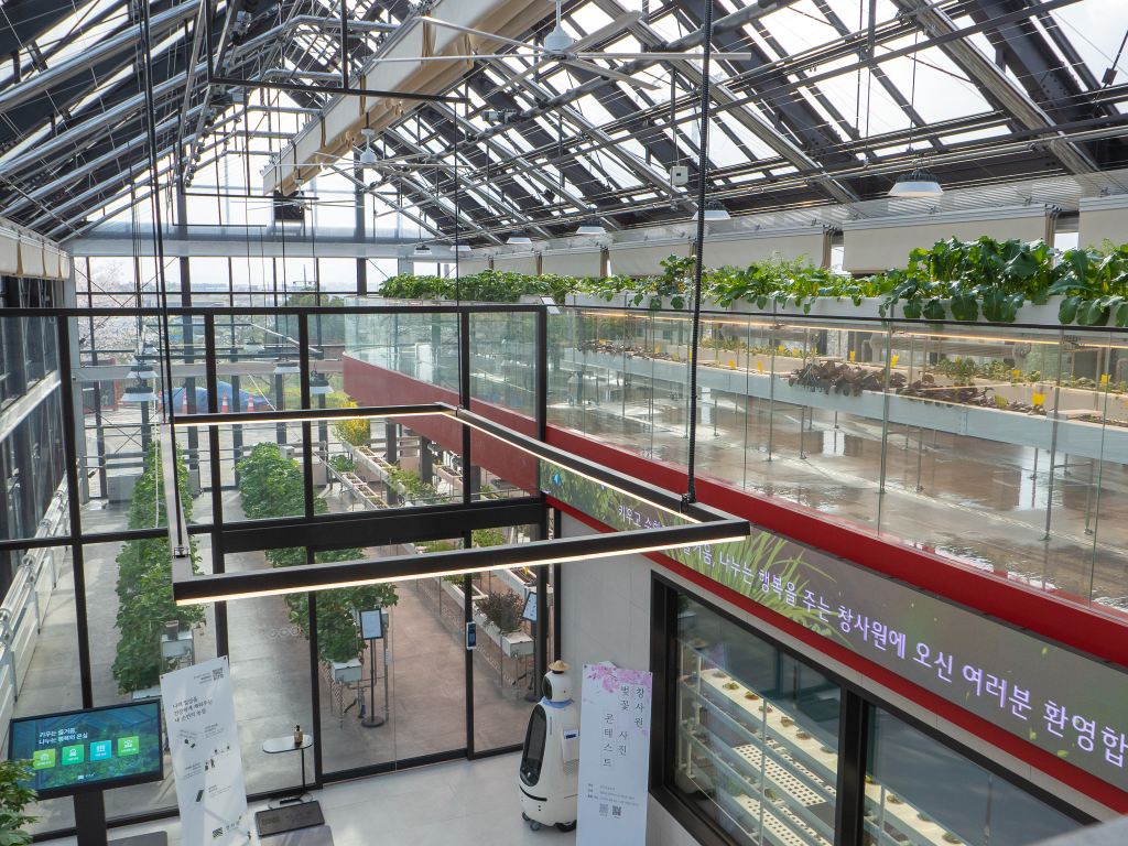 이 플랫폼은 충남 천안에 위치한 유리온실 복합문화공간 창사원에 실제 적용되어 운영되고 있습니다. 창사원은 온실과 카페가 결합된 공간으로, 방문객이 월 단위로 재배 공간을 구독하고 작물을 기를 수 있는 개인 맞춤형 농업 서비스를 제공합니다. 사용자는 전용 앱을 통해 원격으로 작물 생육 상태를 실시간 확인할 수 있으며, 내부를 순회하는 로봇이 촬영한 작물 영상을 앱으로 전송받을 수 있습니다.